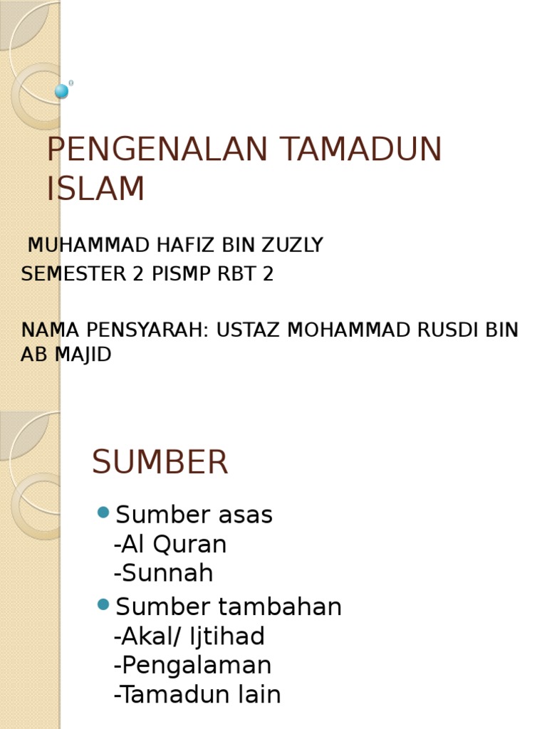 Muhammad asad mensifatkan tamadun islam sebagai satu tamadun yang bersifat ideologi. Ia juga penting bagi mengelakan berlakunya sebarang ajaran sesat dalam agama. Tamadun islam dan tamadun asia. Islam membenarkan sebarang asas pencapaian tamadun lain. 21 sumber dalam tamadun islam beberapa sumber perlulah digunakan bagi mendalami lagi pemahaman mengenai tamadun islam.