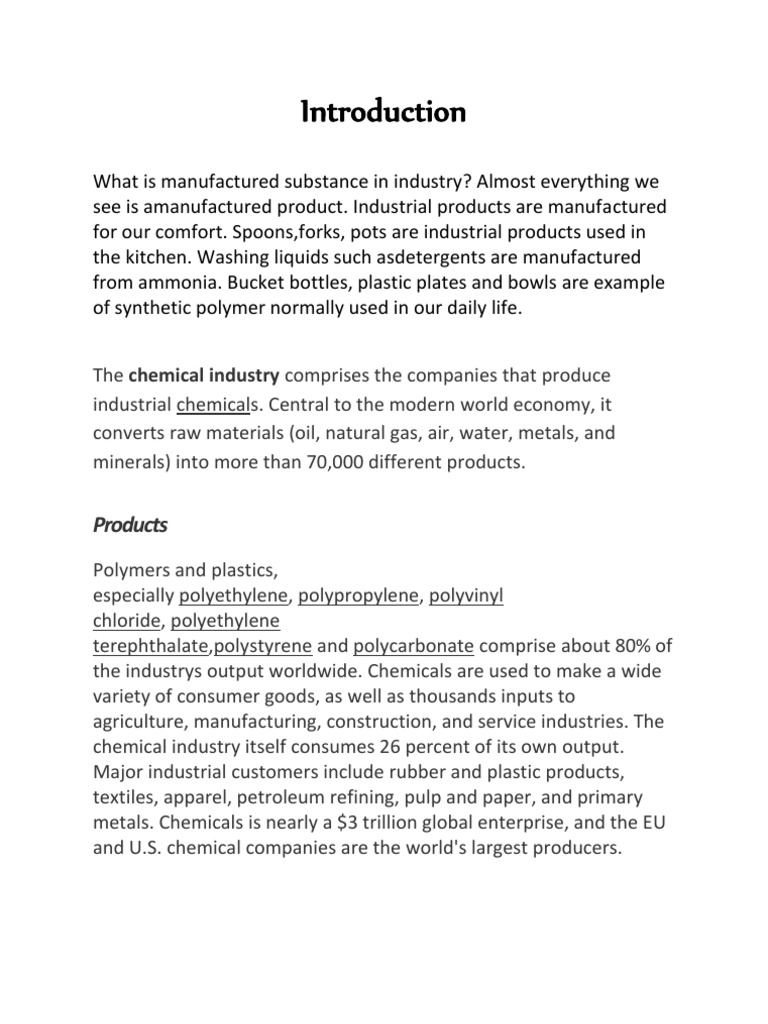 Manufactured Substances In Industry - A targeted strategic approach to global drug substance manufacturing sourcing can unlock several opportunities for buyers.. Drug substance chemistry, manufacturing, and controls information. Introductionmany industrial products are manufactured for our comfort.they are either made from sulphuric acid, ammonia, alloys, syntheticpolymers, glass, ceramics or composite materials. Manufacturing is the production of goods through the use of labor, machines, tools, and chemical or biological processing or formulation. The chemical industry itself consumes 26 percent of its own output. Download manufactured substances in industry.